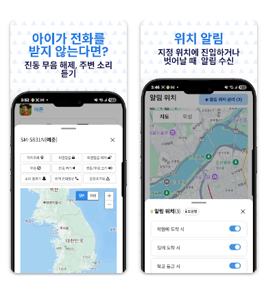 위치 관리 기능에서는 자녀의 현재 위치를 확인할 수 있으며, 학교나 학원 등 안전 지역을 설정하면 출입 시 자동 알림을 받을 수 있습니다.