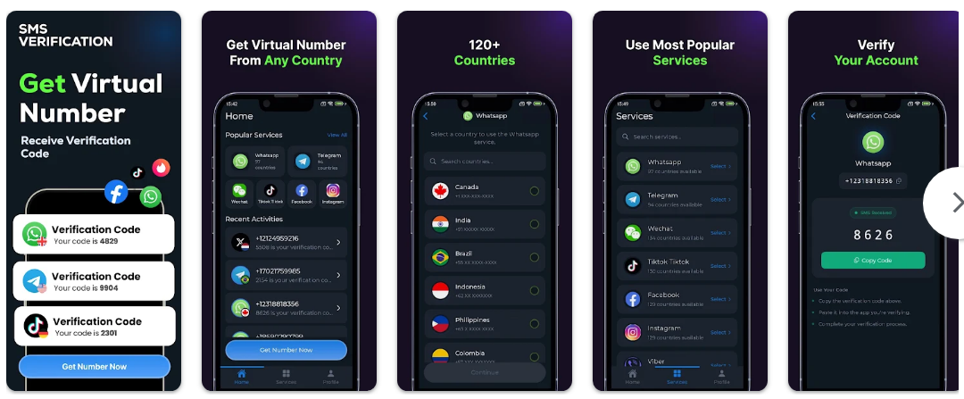 - 계정 활성화: WhatsApp, Instagram 등 SNS 인증용 가상 번호를 제공합니다.