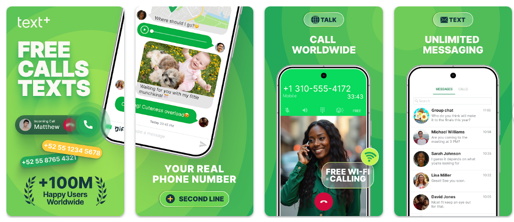 - 무제한 SMS/MMS: 미국·캐나다 번호로 텍스트와 사진 메시지를 무료 전송합니다.