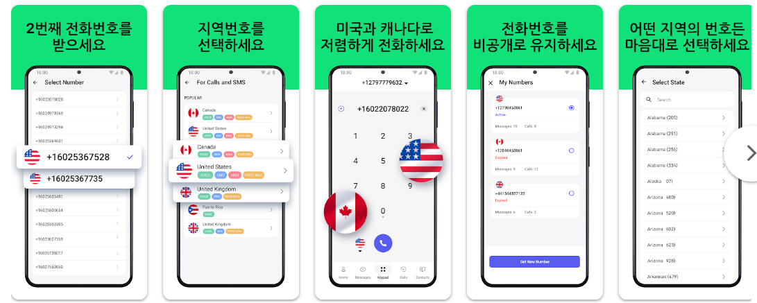 - 다국적 번호: 미국, 영국, 캐나다 등 전 세계 다양한 국가의 번호를 제공합니다.
