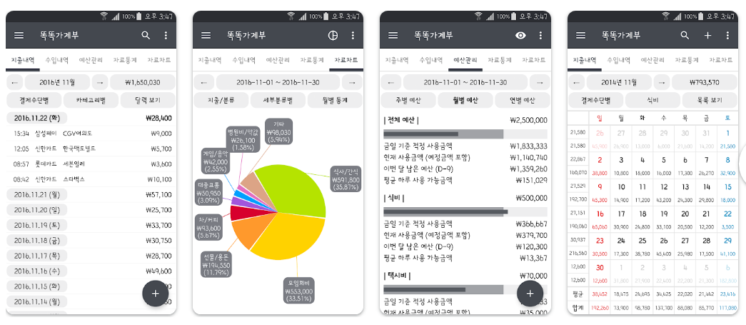 - "똑똑가계부 위젯이 깔끔해서 좋아요. 폰 켤 때마다 남은 예산이 보이니 소비 절제가 됩니다."