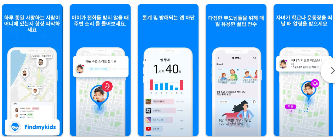 - "파인드마이키즈의 소리 듣기 기능 덕분에 아이와 연락 안 될 때 상황 파악이 되어 좋습니다."