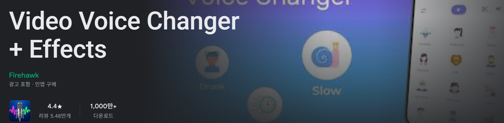 - 광범위한 효과: 유령, 우주선, 남녀 음성 전환 등 60종 이상의 효과를 지원합니다.