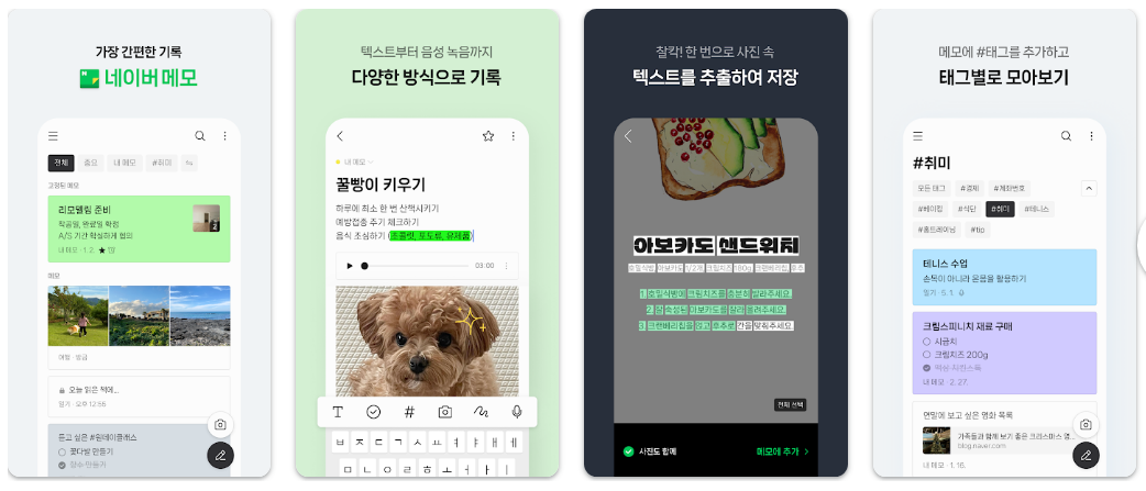 - 웹 스크랩: 네이버 앱이나 브라우저에서 읽던 페이지 내용을 바로 메모로 저장합니다.