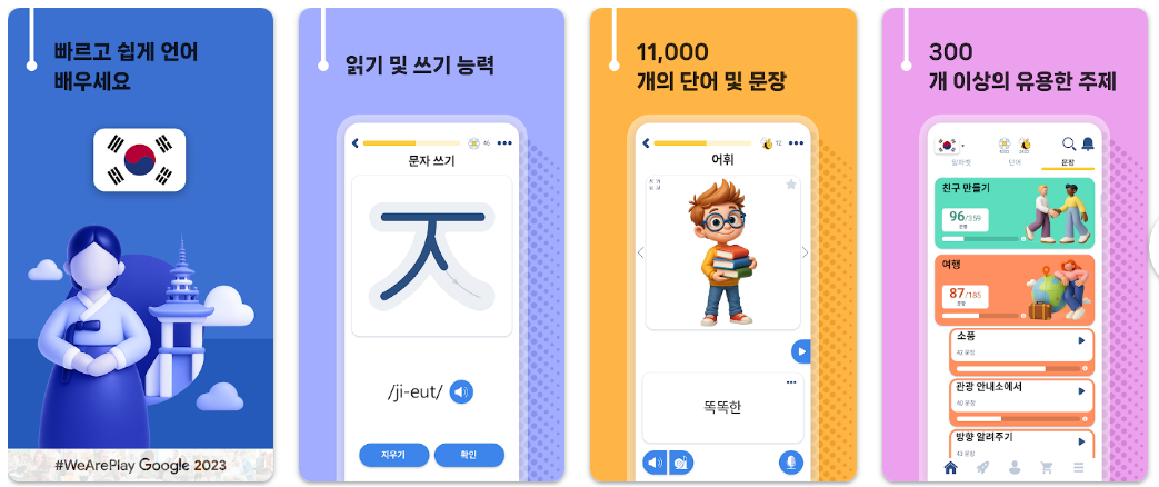 소개된 모든 앱은 한글 기초 자모음 학습부터 시작하므로 입문자도 어렵지 않게 시작할 수 있습니다.
